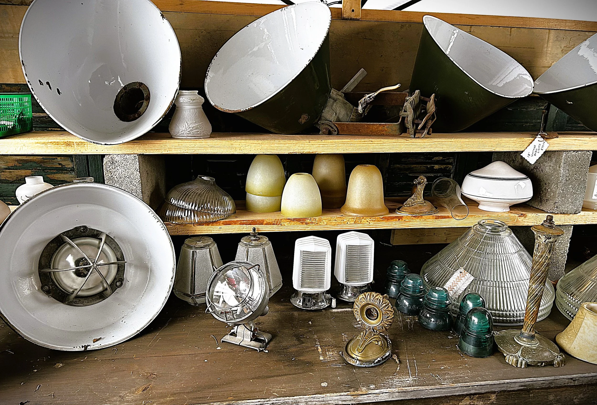 We have an assortment of vintage industrial & decorative lighting and piece-parts.
